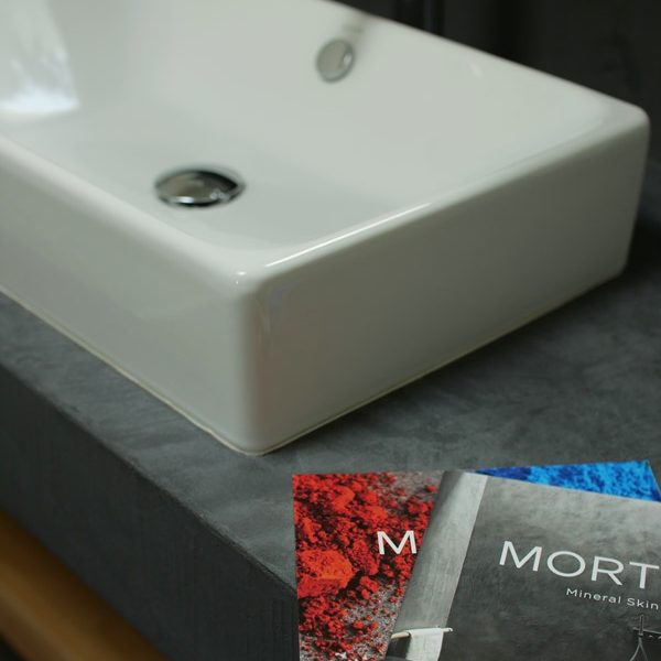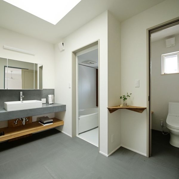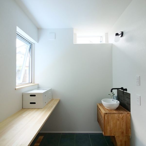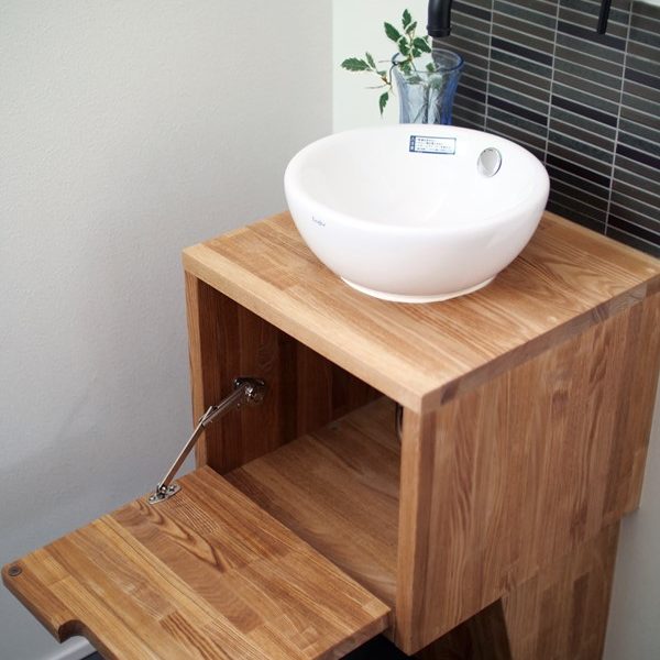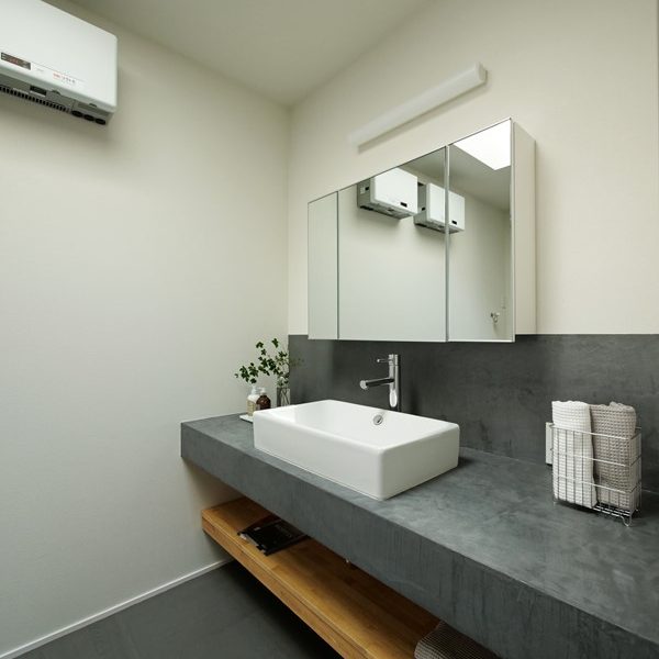 - 重厚感のある洗面台は堅牢で防水性が高い新素材MOLTEXで造作。