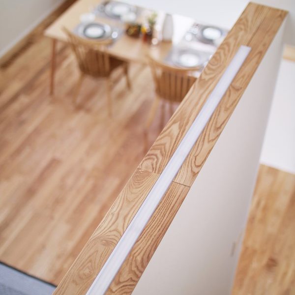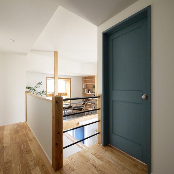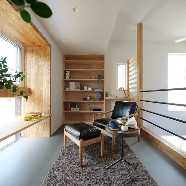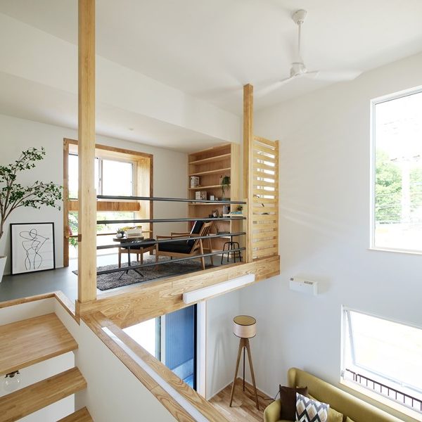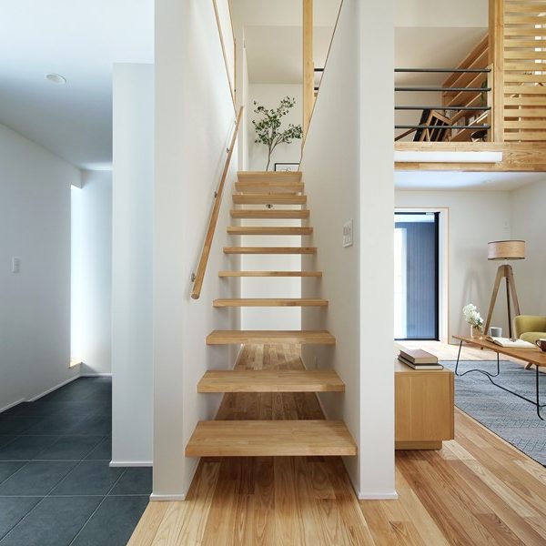 「桜並木、坂道…。この土地の趣のある景観を活かす家づくりがしたかった」というT様。住宅性能にも強いこだわりがあったため、この要望を高いレベルで両立できる工務店として技拓工房を選んでいただきました。広い土間玄関、リビングからスキップフロアで中二階へとつながる大きな吹抜け。一見、「暑さ寒さに弱い間取り」のようですが、床下空調システムにZEH基準をはるかに超えるUA値0.3台の断熱性能、C値0.2という気密性能を組み合わせることで快適な住空間を実現しました。間取りや素材にも技拓工房らしいこだわりを表現。借景を楽しむ場、玄関からリビングを通らずに家事ルーム~キッチンに抜けられる動線。素材に関しては、タイルや自然素材などを贅沢に使う一方で、新素材のMORTEXを自社施工したり、市販の鉄パイプや構造材を手摺りに使ったりなどの工夫が盛り込まれています。