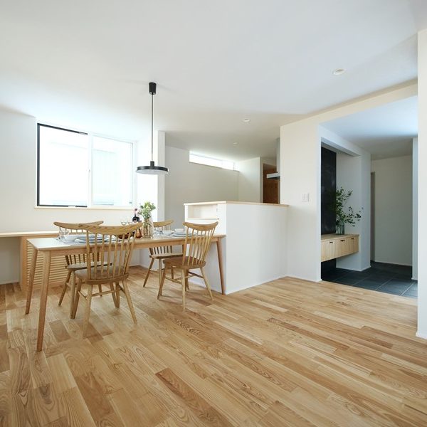 - 床下空調システムにZEH基準をはるかに超えるUA値0.3台の断熱性能、C値0.2という気密性能を組み合わせることで快適な住空間を実現。